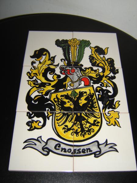 Fizemos uma série de trabalhos em azulejos com temas propostos pelos clientes, alguns já com ideias definidas outros que deixam ao nosso critério. Um caso especial foi um casal Holandês que veio a Portugal de propósito para mandar pintar em azulejos o seu brasão de família "Cnossen"
